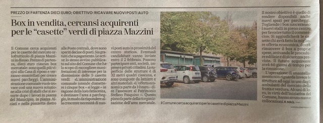 I box sono costituiti da lamiera e altro materiale rimovibili ubicati in Vercelli Piazza Mazzini all’intersezione tra Via Felice Monaco e Via Stara;