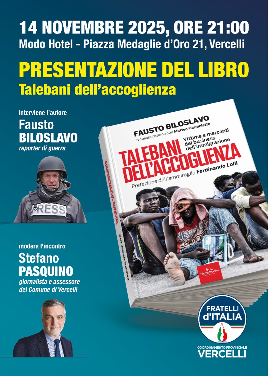 Vi invito a conoscere di persona Fausto Bilosalvo alla presentazione del libro “Talebani dell’accoglienza” venerdì 14 novembre alle ore 21.00 presso il Modo Hotel in Piazza Medaglie D’Oro 21 a Vercelli.