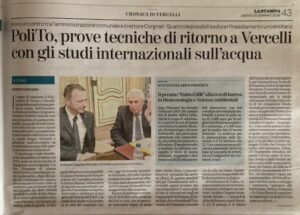 Al centro del confronto, l’unicità di Vercelli e il tema dell’acqua come sfida strategica per il futuro. «L’acqua è la sfida del domani. A Vercelli c’è il passato e il futuro di questa risorsa: è naturale immaginare la città come un centro internazionale per lo studio dell’acqua», ha evidenziato Corgnati.